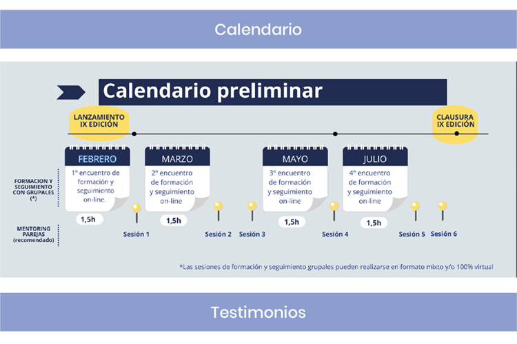 - Cada mentor/a participará en 4 sesiones formativas, que se realizan on line, con grupos de un máximo de 15 personas.