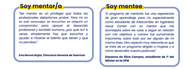 En un periodo de 4 meses se establece una relación mentor/ra y mentorizada enfocada a acompañar a las estudiantes de Ingeniería Naval en su entrada al mundo laboral.