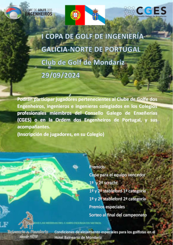 En relación al asunto, el CGES está organizando un torneo de Golf entre los Colegios profesionales que lo formamos y la Ordem dos Engenheiros de Portugal. La cita deportiva este año tendrá lugar el 29 de septiembre en el Club de Golf de Mondariz.
