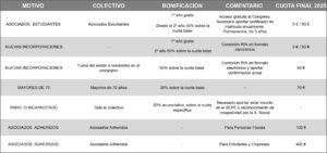 - En el caso de reingresos para acogerse a este descuento el futuro asociado debe haberse dado de baja de la asociación al menos 3 años antes de solicitar de nuevo el alta.