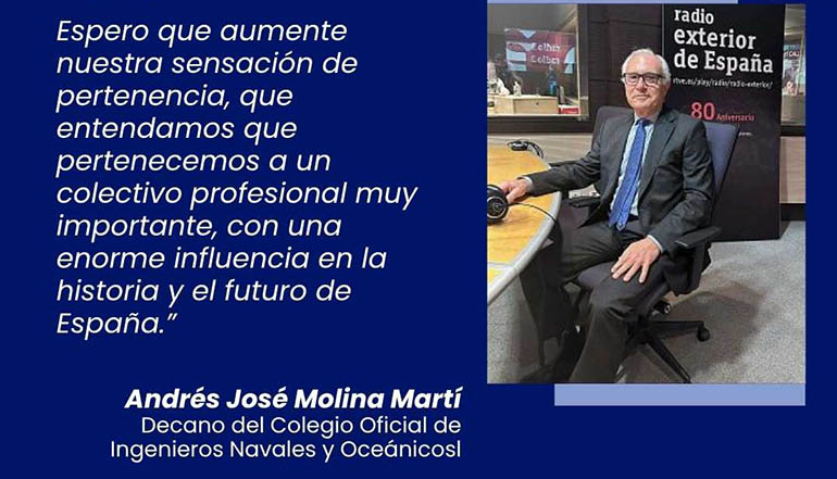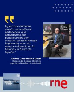 Primera entrevista al nuevo Decano del Colegio Oficial de Ingenieros Navales y Oceánicos, Andrés Molina Martí, que ha realizado en el programa de radio Españoles en la Mar de RNE.