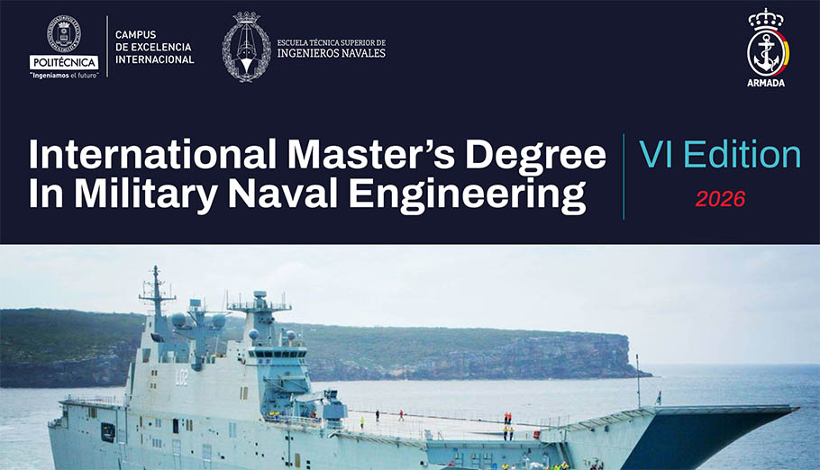 La ETSIN imparte un Máster Internacional en Ingeniería Naval Militar, gracias a un Convenio entre la Armada y la UPM, con el apoyo de un Consorcio de 22 empresas y organismos del ámbito de la Defensa.