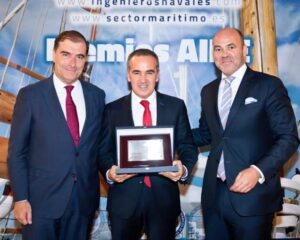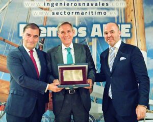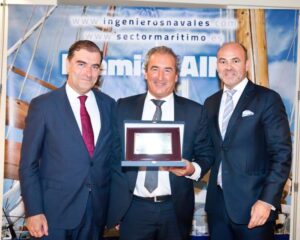 Recibió la mención Francisco Cuervas, CEO de Ghenova de de manos de José de Lara Rey, Decano del COIN y Manuel A Martínez Ruiz, Vicealmirante Director de Construcciones Navales de la Armada.