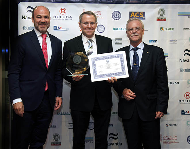 Recogieron el galardón Antonio Pacheco Etchevers por parte de Astilleros Gondán y Guillermo Alomar por parte de Baleària